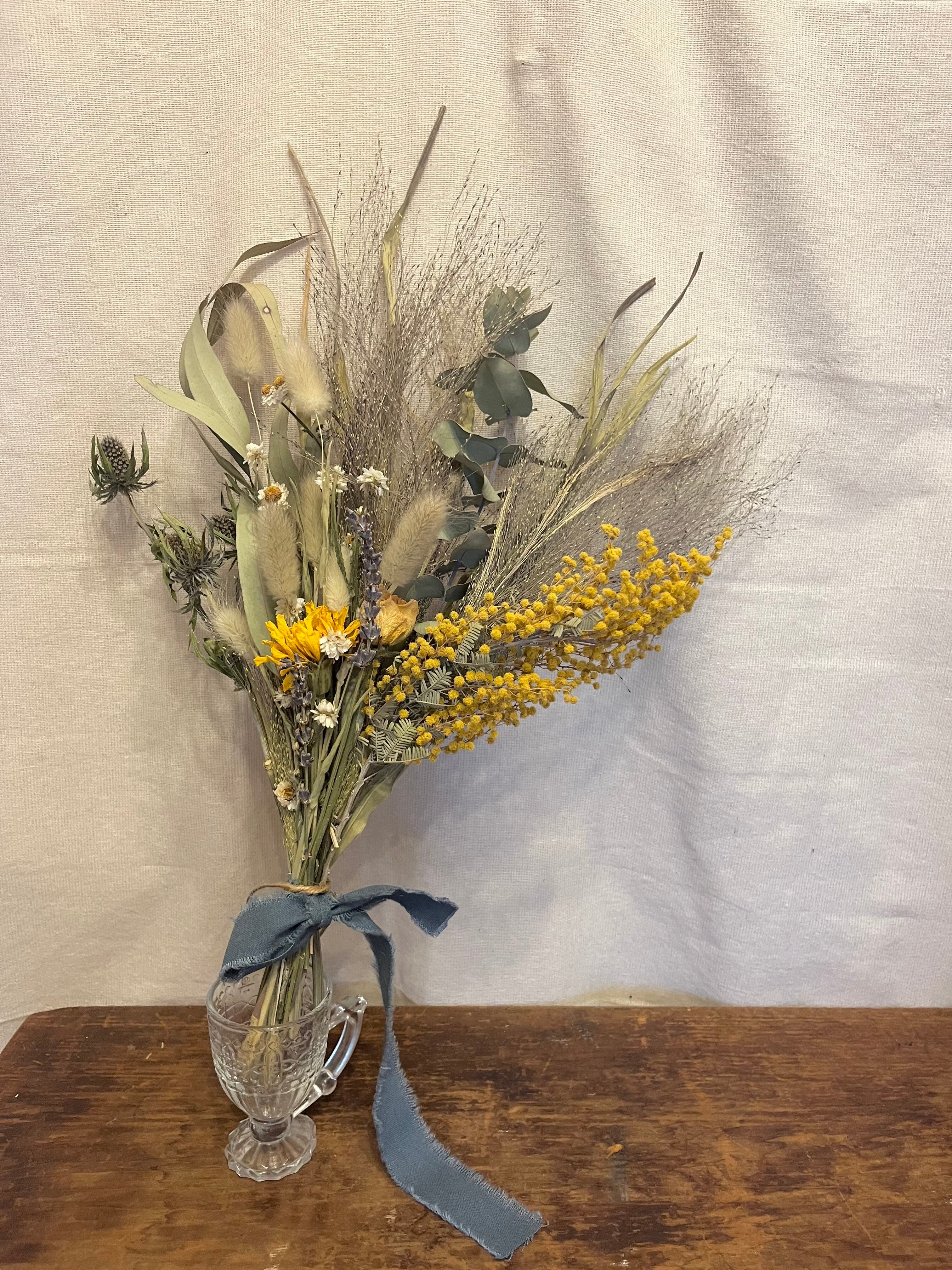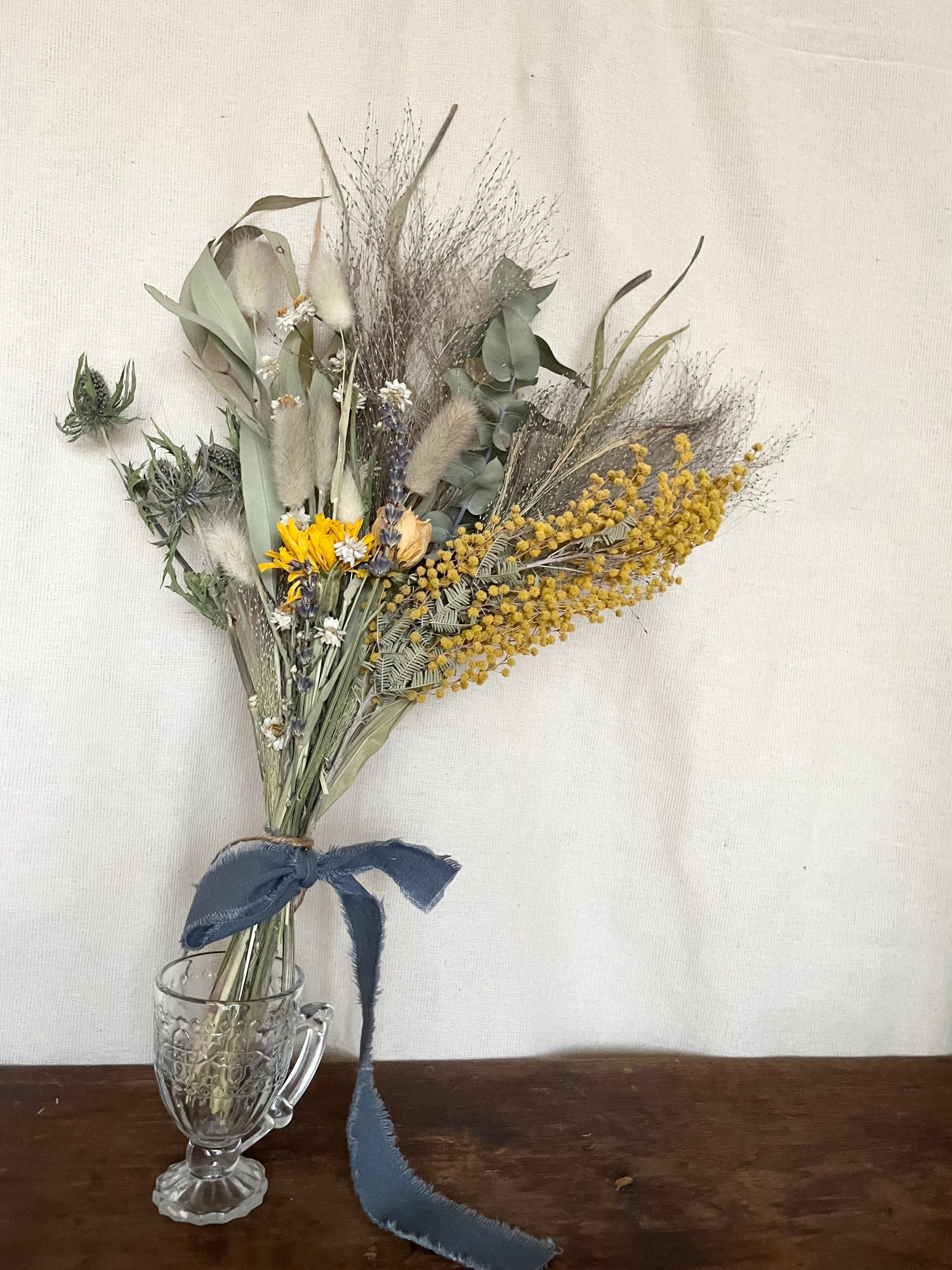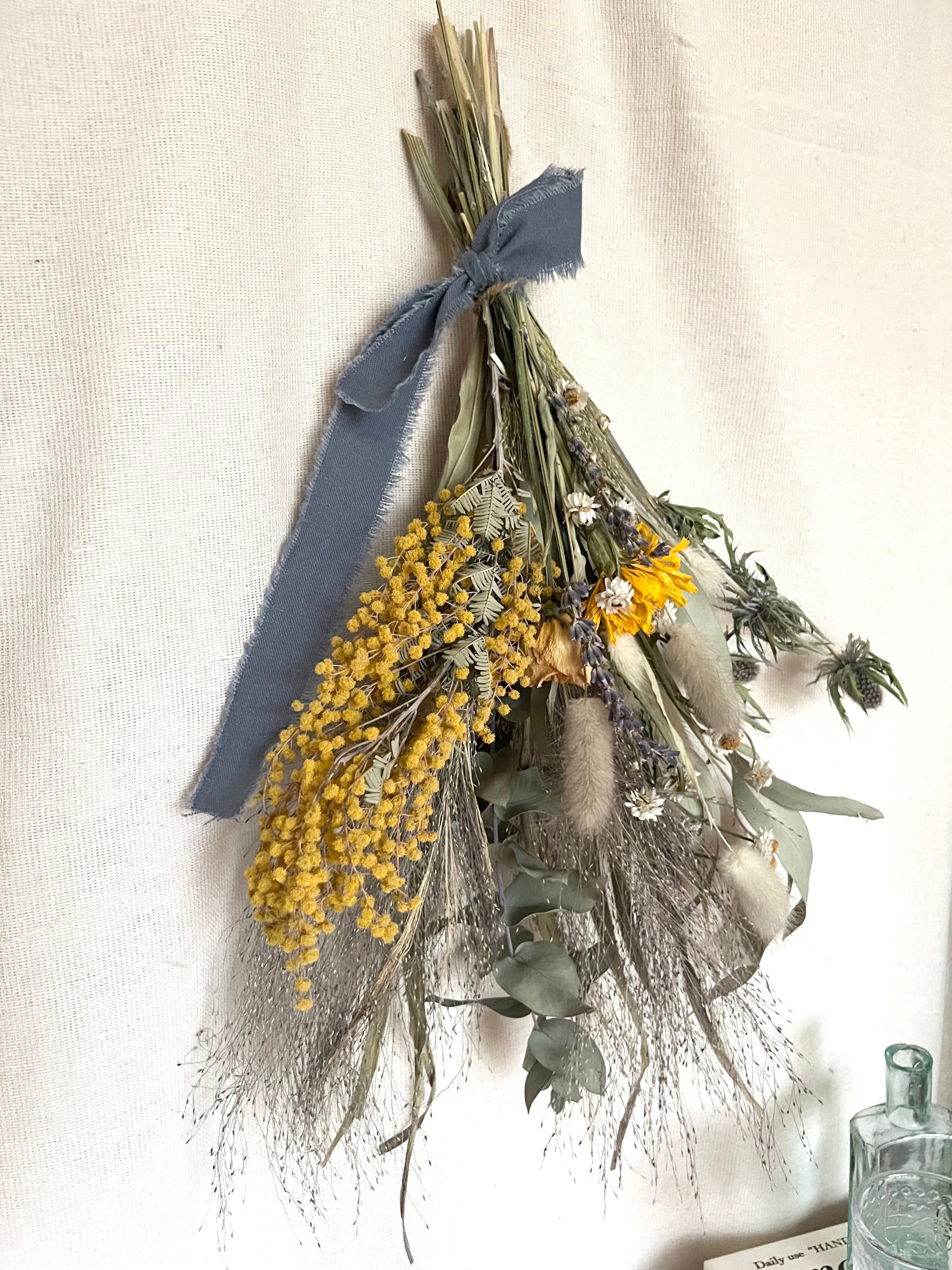 ミモザ/マリーゴールド/バラ/カモミール/ユーカリ/エリンジウム/ラグラスバニーテール/ラベンダー/スモークグラス